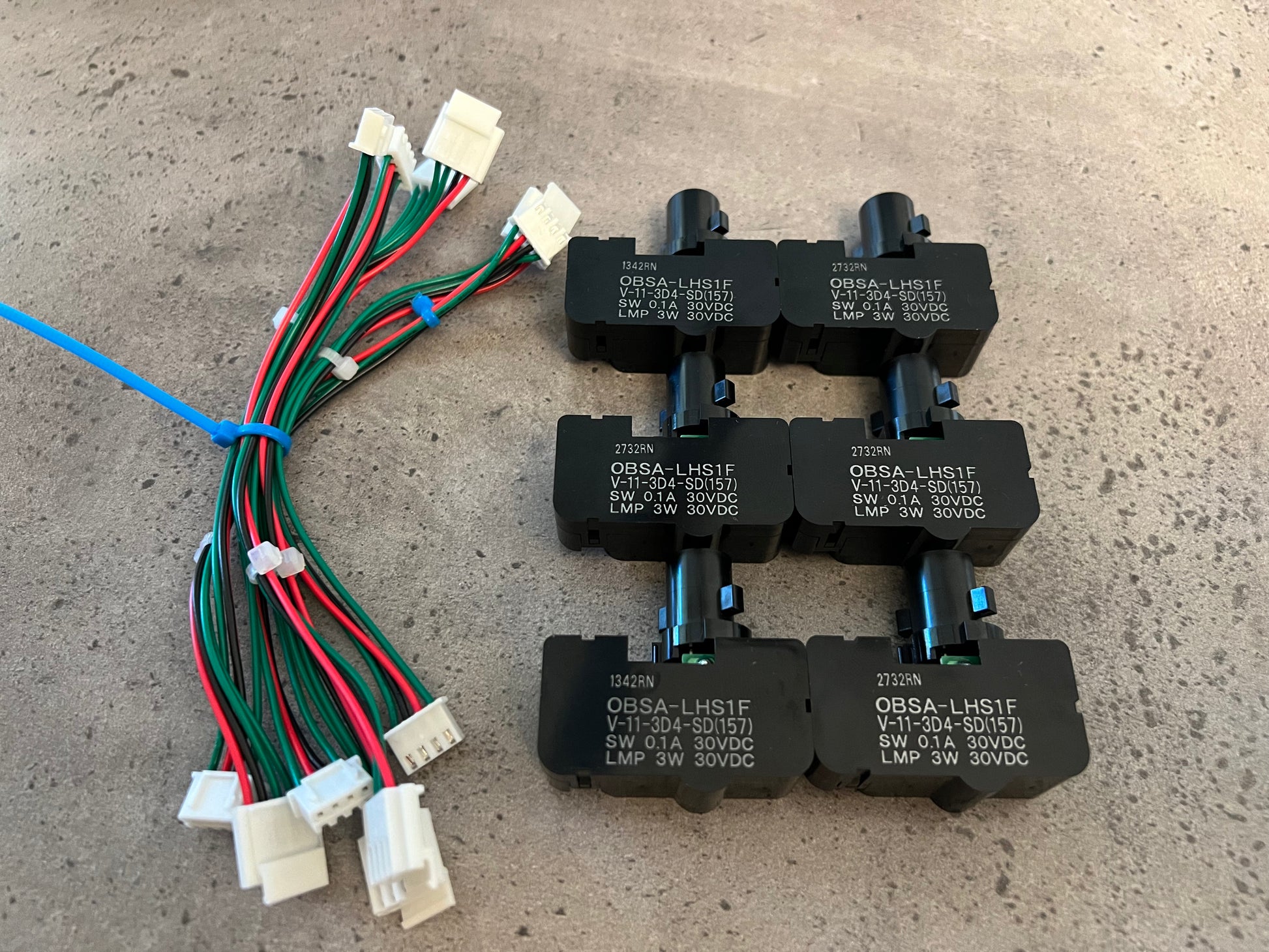 This is a set of 6 OBSA-LHS1F Sanwa Microswitches and 7 (One to be used as a backup) Wiring harnesses for your Gamo2 or Yuancon controller. All wiring is hand made and tested before shipment. A 30Day Warranty period applies from date of receipt for the wires.